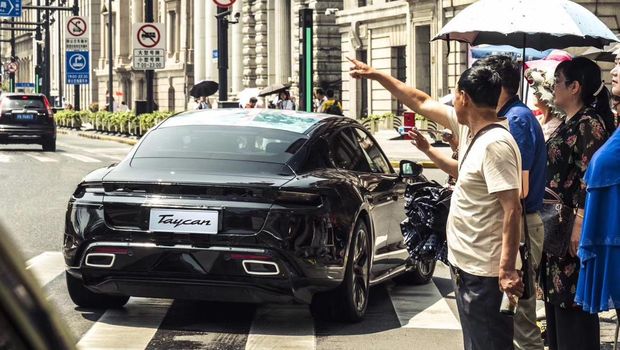 Tam ve siyah bir kamuflajlı kaplı olmasına rağmen Çin sokaklarında yoğun ilgi gören Taycan, üçlü demo turuna hazırlanıyor.