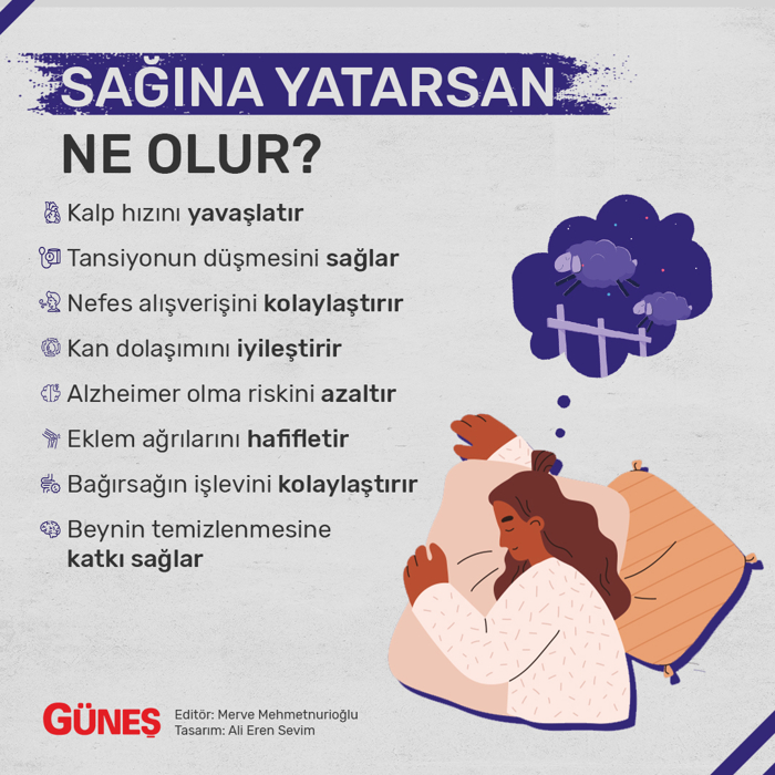 Sağa yatmak, sağlıklı bir uyku pozisyonu olarak birçok fayda sağlar. Kalp sağlığından beyin fonksiyonlarına, eklem ağrılarından sindirim sistemine kadar geniş bir yelpazede olumlu etkileri bulunmaktadır. Bu uyku pozisyonunu tercih ederek, hem uyku kalitenizi artırabilir hem de genel sağlığınızı koruyabilirsiniz. Sağlıklı bir yaşam için doğru uyku pozisyonunu seçmek, küçük ama etkili bir adım olacaktır. İşte sağa yatmanı faydaları hakkında detaylar...