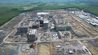 Sakarya'nın Adapazarı ilçesinde 300 dönümlük alanda yapımı devam eden 1000 yatak kapasiteli Sakarya Şehir Hastanesi inşaatı yükseliyor.