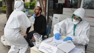 Dün öğlen saatlerinde İl Sağlık Müdürlüğü'ne bağlı oldukları öğrenilen iki sağlık çalışanı, Karşıyaka İskele ve Osmanbey Parkı'nda vatandaşlara koronavirüs testi yaptı. Sosyal medyaya da düşen görüntülerde sağlık çalışanlarının, sıraya giren vatandaşlarla tek tek ilgilendiği ve vatandaşların boğazları ile burunlarından örnek aldıkları, örnekleri deney tüplerine koydukları görüldü.