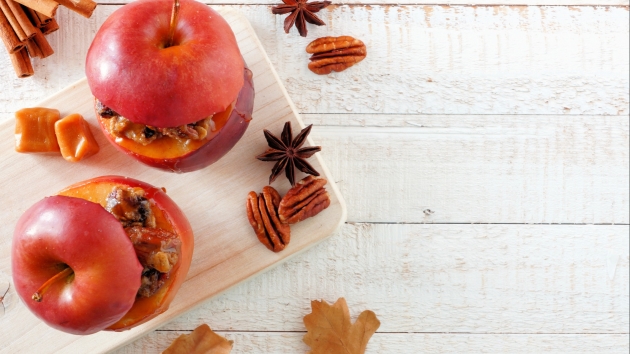 Malzemeler (6 porsiyon): 6 orta boy kırmızı elma, 1 su bardağı ceviz, 1 çay bardağı kuru üzüm, 2 yemek kaşığı ham bal, 1 çay kaşığı limon kabuğu rendesi, 1 çay kaşığı toz tarçın, 1 yemek kaşığı tereyağı, yarım çay kaşığı vanilya özü