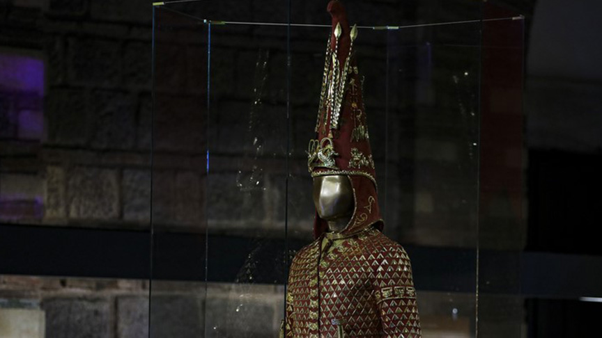 Kazakistan'ın "Altın Elbiseli Adam Dünya Müzeleri'nde" projesi çerçevesinde Anadolu Medeniyetleri Müzesi'nde sergilenmeye başlanan zırh, Türk kültürünün ve medeniyetinin tarih içindeki derinliğini ortaya koyan önemli argümanlar arasında yer alıyor.