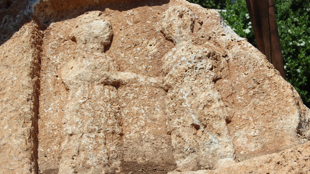 Adıyaman Müze Müdür Vekili Mehmet Alkan tarihi eser ile ilgili, “Adıyaman’ın Kahta ilçesi Tütünocak köyünde 8 ton ağırlığında bir taş bulundu. Bir niş üzerinde bir kadın ve bir erkek kabartması bulunmaktadır. Bu kabartmada ise bir tokalaşma sahnesi gözlemlemekteyiz. Büyük ihtimalle bu ölen eşlerden birisinin veda sahnesi olarak karşımıza çıkıyor. Taşın üzerindeki kabartmalara, üzerindeki giysilere baktığımızda ise Roma Dönemi'yle tarihlemekteyiz" dedi. Alkan, "Tütenocak köyünde yağmurun yağması sonucu üzerindeki çamur temizlenmiş ve insanlar bunun üzerinde bir kabartma olduğunu fark ediyor. Bunun üzerine bize bir ihbar geldi. Biz bu ihbar üzerine köye gittik. Köyde yaptığımız incelemede ise Roma Dönemi'ne ait bir tokalaşma sahnesinin olduğu bir kabartma bulduk. Önce kurul kararı aldık. Kurul kararından sonra vinç ve tır yardımı ile Adıyaman Müzesi’ne taşıdık” şeklinde konuştu.