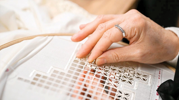 Geleneksel olarak beyaz kumaş üzerine beyaz iplikle uygulanan, ipliklerin çekilip kesilmesiyle desenlerin oluşturulduğu Antep İşi, bölgede yüzyıllardır kuşaktan kuşağa aktarılan köklü bir nakış tekniği olma özelliğini taşıyor.
