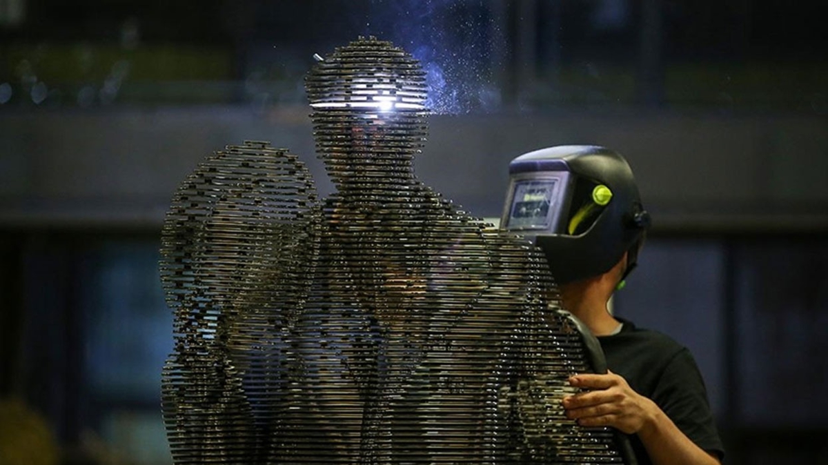 Bursalı metal sanatçısı Rıdvan Sevim, Cumhuriyet'in kurucusu Gazi Mustafa Kemal Atatürk'ün Türkiye Büyük Millet Meclisinin (TBMM) açılışında şapkasıyla halkı selamladığı sırada çekilen fotoğrafından esinlenerek çelikten heykelini yaptı.