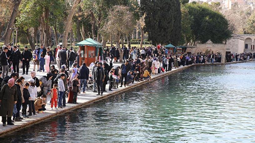 Şanlıurfa'daki tarihi Balıklıgöl Yerleşkesi'nde sömestir tatili ve hafta sonu yoğunluğu yaşanıyor.
