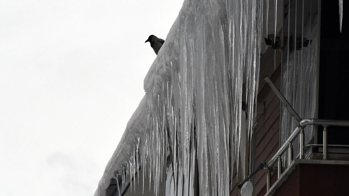 Soğuk havanın etkisiyle bina çatılarında buz sarkıtları oluştu.