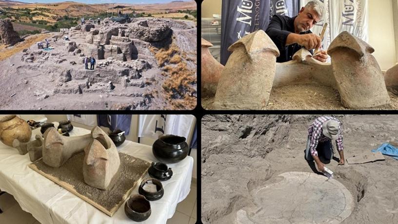Elazığ'da Tadım Kalesi ve Höyüğü'nde yürütülen arkeolojik kazılarda dini ritüellerde kullanıldığı değerlendirilen yaklaşık 6 bin yıllık "boğa başlı sunak" bulundu.