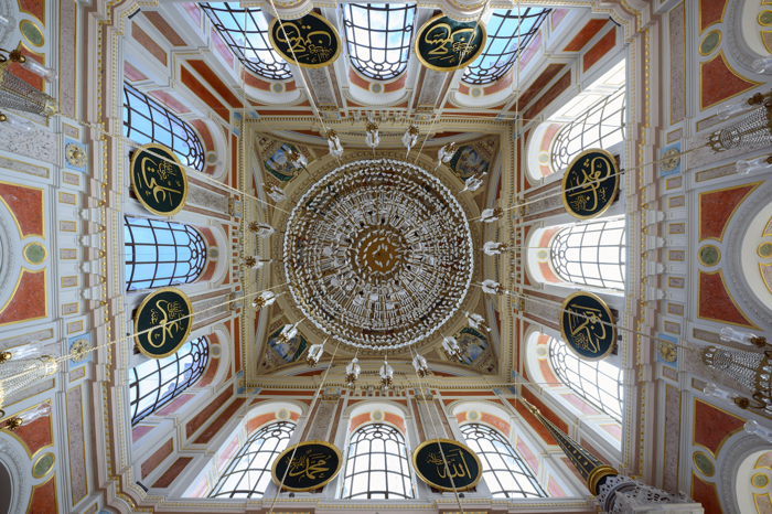 "Büyük Mecidiye Camisi, İstanbul'un incisi diyebileceğimiz yapılardan bir tanesidir. Tek kubbeli bir harim ile giriş kısmındaki hünkar kasrından meydana gelir. Bu yönüyle aslında birçok o dönem camisiyle benzerlikler içindedir. İki minaresi de bu kasrın bulunduğu bölümlere yerleştirilmiştir. Hünkar kasrı iki taraftan batı bölümde yer alır. Buraya elips biçiminde şık bir merdivenle çıkılır. Kapıdan girildikten sonra bir koridorla beraber bir genişletme mekanı vardır, ondan sonra da yaklaşık 12 metre çapında bir kubbenin kapattığı orta mekana geçilir."