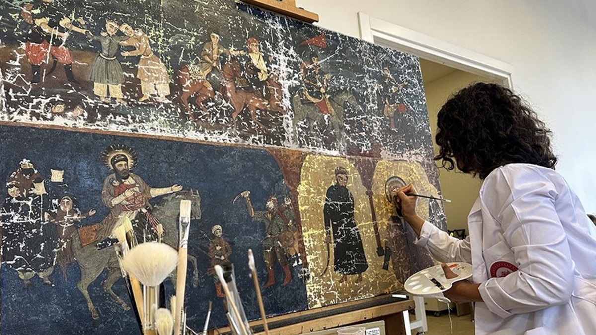 Atölyede, 19. yüzyıla ait, birbirinden farklı tarz ve ebatta 5 tablo üzerinde çalışılıyor. Tablolar restore edilirken bir yandan da eserlerin kime veya hangi ekole ait olduğuna dair araştırmalar devam ediyor.
