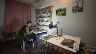 Ressam Murat Ozan, AA muhabirine, çocukluk yıllarında başladığı sanatını severek sürdürdüğünü söyledi.