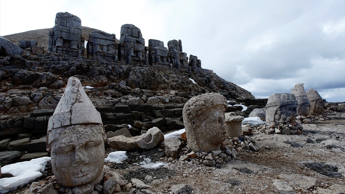UNESCO Dünya Kültür Miras Listesi'ndeki Nemrut Dağı Ören Yeri'nde bulunan anıtsal dev heykeller, depremleri zarar görmeden atlattı.