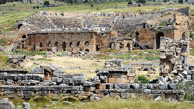 UNESCO Dünya Kültür Mirası Listesi'nde yer alan Pamukkale Hierapolis Antik Kenti'ndeki bin 800 yıllık antik tiyatro, ziyaretçilerini bekliyor. Bölgeye gelen turistler, beyaz travertenler, antik havuz ve antik kentin yanı sıra antik tiyatroya da oldukça yoğun ilgi gösteriyor. Asırlara meydan okuyup dimdik ayakta kalan devasa yapının, geceleri de aydınlatılıp bölgedeki turizm potansiyelinin artırılması bekleniyor.