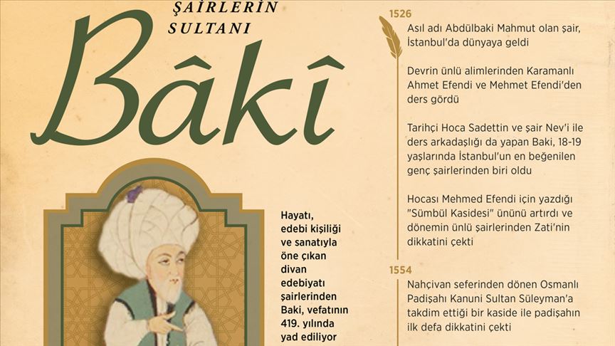 Hayatı, edebi kişiliği ve sanatıyla öne çıkan divan edebiyatı şairlerinden Baki, vefatının 419. yılında yad ediliyor.