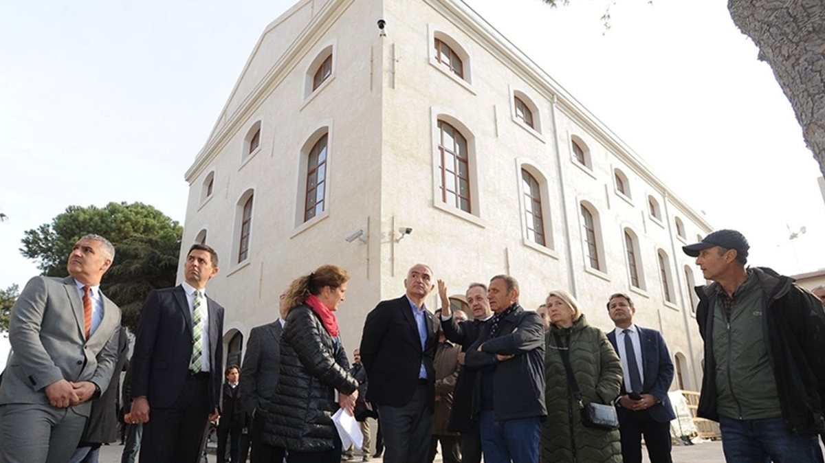 Paylaşımda, "Bakanımız Ersoy, restorasyon ve renovasyon çalışmaları devam eden tarihi Alsancak Tekel Fabrikası'nda incelemelerde bulunarak tarihi yapının 29 Nisan'da açılacağının müjdesini verdi." ifadelerine yer verildi.
