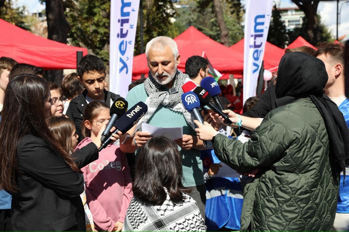 Yetim Vakfı Teşkilatlanma Koordinatörü Surur Çelebi "Gazze'deki kardeşlerimizin morale, maddi manevi desteğe çok ihtiyaçları var. Bugün yaptığımız etkinlikte amacımız 81 ilde aynı anda aynı etkileşimi yapmak. İnsanların boyalar ve resimler vasıtasıyla duygularını, hayallerini, umutlarını ve Gazze'ye dair beklentilerini, çizgileri yansıtmalarını hedefliyoruz. Gazze'nin duygusunu, acısını içimizde hissediyoruz. Bu derin ve yoğun duyguyu kağıtlara dökerek bunu kamuoyuyla paylaşmak, medyamızla paylaşmak bu farkındalığı yaşatmak adına biz bu faaliyeti yapıyoruz" şeklinde konuştu.