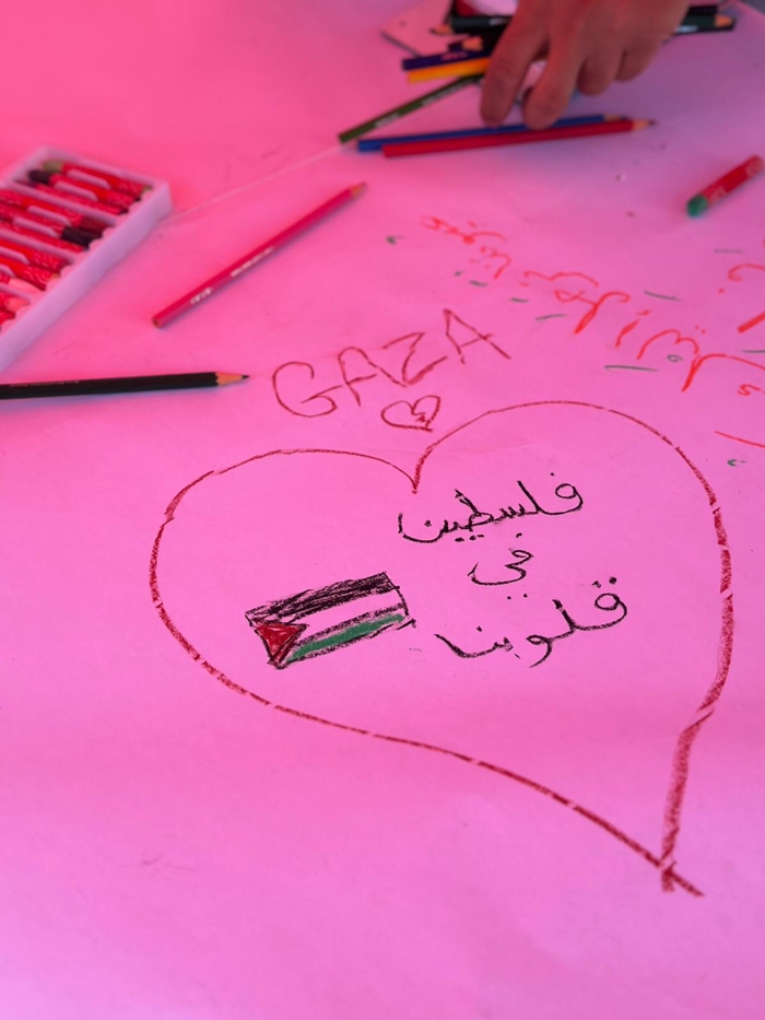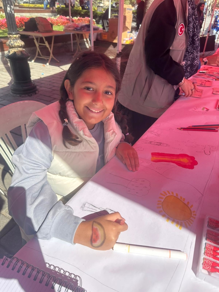 Bugün burada, Filistinli çocukların, annelerin ve zulüm altındaki tüm kardeşlerimizin sesini duyurmak; onların haklarının teslim edilmesi ve bu zalimce saldırıların sona ermesi için "Filistinli Çocuklar İçin Çiz" etkinliğinde bir araya geldik. Çocuklarımız ve gençlerimiz, dualarını, temennilerini ve zalimlere karşı duruşlarını tuvallerine resmetti. Rabbimizden niyazımız, bu zulüm ve işgalin en kısa zamanda son bulmasıdır.