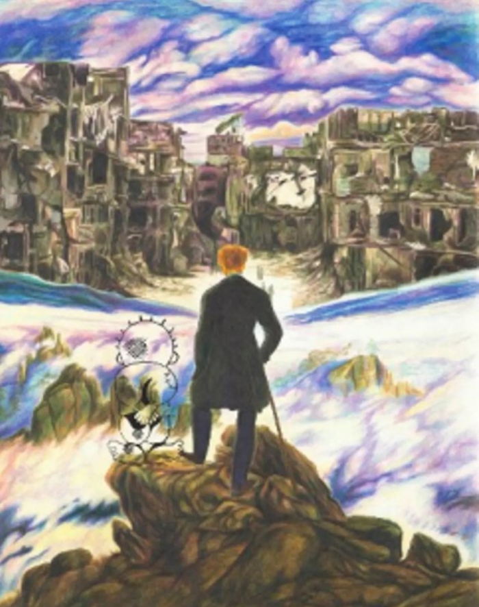 Handala, Fabriano kağıt üzerine toz pastel ve kuru boya, 70x100 cm