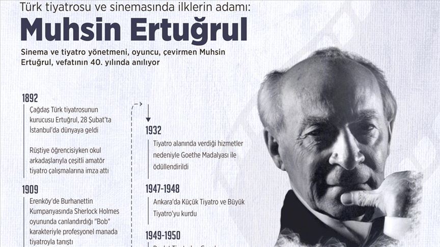 Türk sineması ve tiyatrosunda birçok ilki gerçekleştiren Muhsin Ertuğrul, vefatının 40. yılında anılıyor.