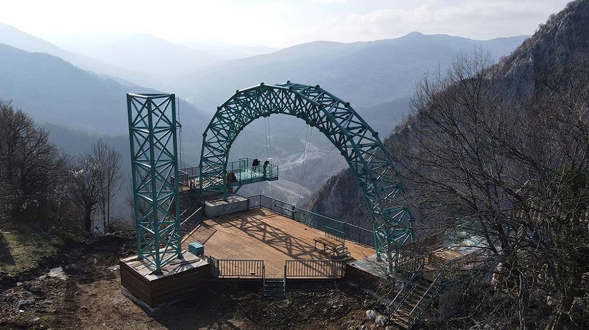 Proje kapsamında salıncağın iki tarafına yapılan cam teras sayesinde ziyaretçiler, kanyon girişini 600 metre yukarıdan izleyebilecek.