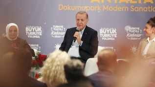 Erdoğan, dün Antalya'daki çeşitli açılış ve incelemelerinin ardından, AK Parti Kadın Kollarınca Dokumapark Modern Sanatlar Galerisi'nde düzenlenen "Kadınlarla Büyük Türkiye Yolunda Programı"na katıldı.