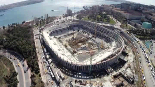 UEFA Avrupa Ligi'nde son 16 takıma kalarak Clup Brugge eşleşen ve ilk maça hazırlanan Beşiktaş'ın Dolmabahçe'deki yeni stadının yapımı hızla devam ediyor. Dolmabahçe'de 1947 yılında yapılarak hizmete açılan Beşiktaş stadyumunun yıkılarak yerine yapımına başlanan Vodafone Arena'nın tribünlerinin kaba inşaatında sona yaklaşıldı. Tribünlerinin kaba inşaatında yüzde 90'ı tamamlanan stadyumun havadan yaptığımız çekimlerde artık yükselmeye başladığı görülüyor. Tribünlerde koltukların yerleştirileceği bölümlerin yapımında sona gelinirken sadece eskiden şeref tribünü ve basın tribününde yer aldığı “Numaralıö bölümün üst katlarında kaba inşaat çalışmaları sürüyor. Eski tarihi stadyumun bazı bölümlerinin korunarak devam edilen stadyumun kaba inşaatının bitmesinin ardından ince işçiliğe ve maçların oynanacağı yeşil sahanın yapımına geçilecek.