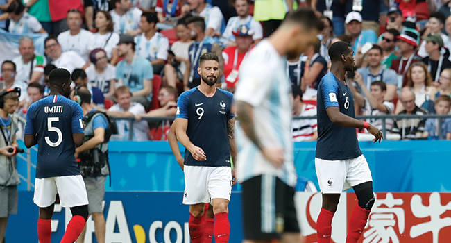 FIFA 2018 Dünya Kupası'nda Fransa, Arjantin'i 4-3 mağlup etti ve çeyrek finale yükseldi.