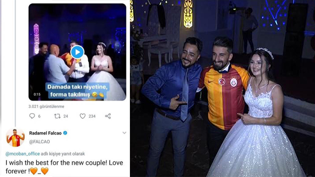 Galatasaray forması giyen damada Falcao'dan mesaj