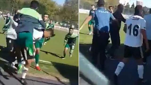 Sahaya giren polisler, kavgayı sonlandırmaya çalıştı. Bu sırada dışarıda bulunan taraftarlardan bazılarının "Parçala" diye bağırması dikkat çekti.
