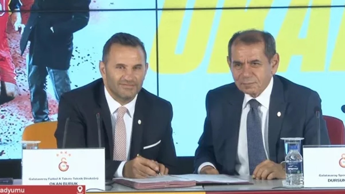 Galatasaray'da teknik direktörlüğe getirilen Okan Buruk, sarı-kırmızılılarla iki yıllık sözleşmeye imzayı attı. Başkan Dursun Özbek ile birlikte düzenlenen basın toplantısında konuşan Okan Buruk, "Galatasaray'da hedef hiçbir zaman değişmez. Bu seneki tek hedefimiz şampiyonluk. Fatih Terim benim için çok değerli bir isim. Aynı zamanda Galatasaray için çok önemli bir isim. Dün kendisi beni aradı, 'hayırlı olsun' dedi. 'Elimden ne geliyorsa yanındayım' dedi." şeklinde konuştu.