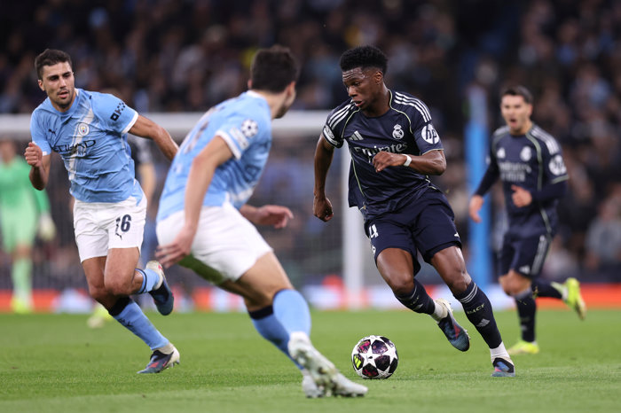 İngiliz ekibi Manchester City'yi ilk maçta 3-0 mağlup eden İspanyol takımı Real Madrid, deplasmandaki rövanş maçında da rakibini 2-1 yenerek çeyrek finale yükseldi. Manchester City'de Bernardo Silva, 20. dakikada kırmızı kart gördü. Real Madrid'de milli futbolcu Arda Güler, maça ilk 11'de başladı.