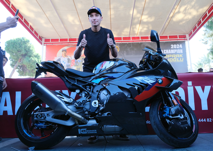 2024 Dünya Superbike (WSBK) şampiyonu olan milli motosikletçi Toprak Razgatlıoğlu, İspanya'da düzenlenen Uluslararası Motosiklet Federasyonu (FIM) ödül töreninde şampiyonluk madalyasını aldı.