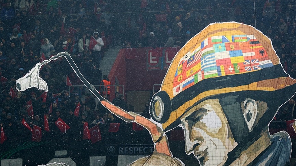 UEFA Konferans Ligi play-off turunda Trabzonspor-Basel maçı öncesinde tribünlerde açılan deprem koreografisi beğeni topladı.
