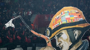 Maç öncesinde açılan ve üzerinde arama kurtarma çalışanının kurtardığı çocuk ile Türkiye'nin yanı sıra yurt dışından yardıma gelen ülkelerin bayraklarının da yer aldığı koreografi, 30 kişilik taraftarın 2 günlük çalışmasıyla hazırlandı.