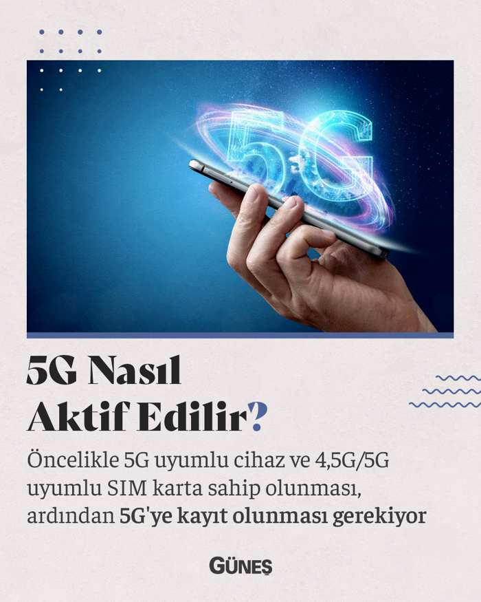 5G NASIL AKTİF EDİLİR? Öncelikle 5G uyumlu cihaz ve 4,5G/5G uyumlu SIM karta sahip olunması, ardından 5G'ye kayıt olunması gerekiyor |