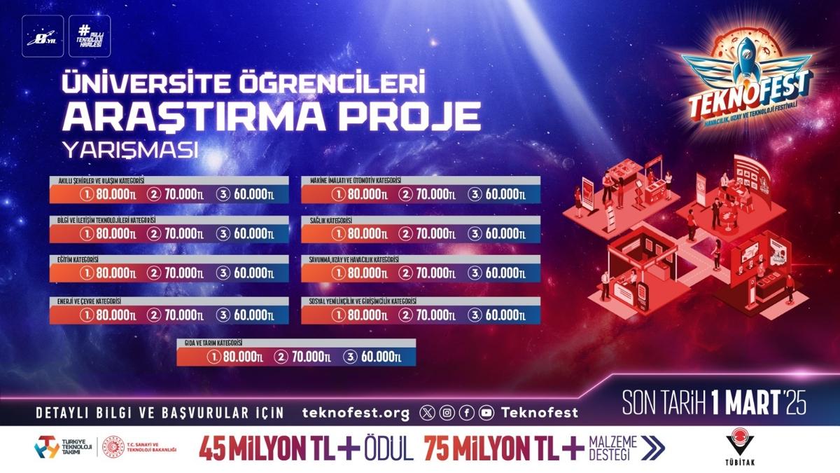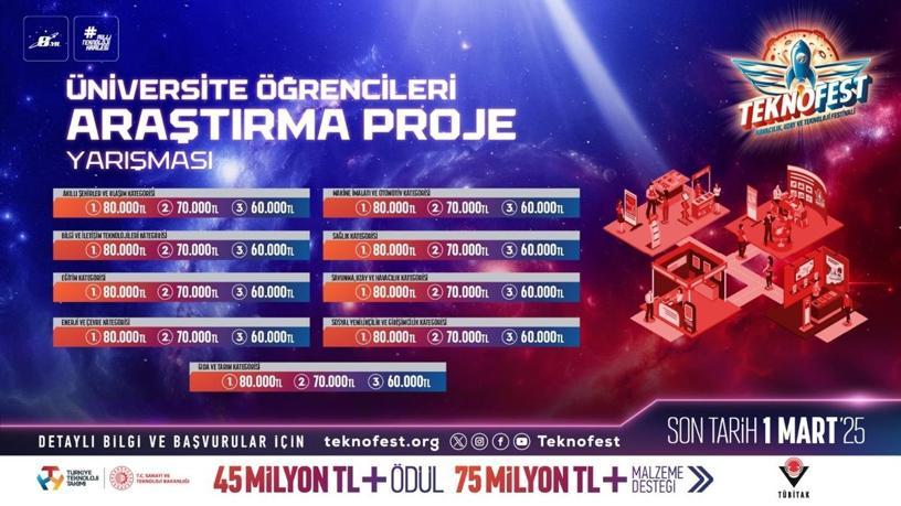 Gençlerin bilim ve teknoloji yolculuğu başlıyor: TEKNOFEST Üniversite Öğrencileri Araştırma Proje Yarışması başvuruları devam ediyor!
