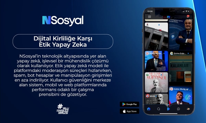 NSosyal'in teknolojik altyapısında yer alan yapay zekâ, işlevsel bir mühendislik çözümü olarak kullanılıyor. Etik yapay zekâ modeli ile platformdaki moderasyon süreçleri hızlanırken, spam, bot hesaplar ve manipülasyon girişimleri en aza indiriliyor. Kullanıcı güvenliğini merkeze alan sistem, mobil ve web platformlarında performans odaklı bir çalışma prensibini de gözetiyor.