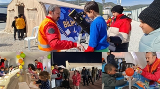 Oyun ve etkinlik çadırlarında, alanında uzman kişiler tarafından afetten etkilenen çocuklar için hazırlanan programlar gönüllüler tarafından titizlikle yürütülüyor.