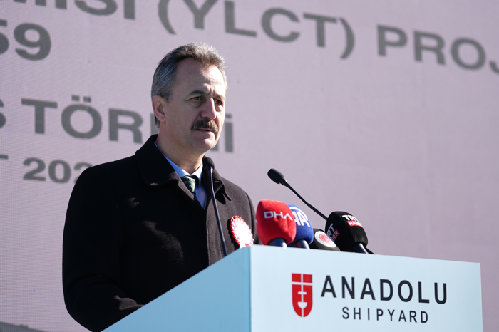 "Bugün inişini takip edeceğimiz bu gemiyi, kabul testlerini de başarıyla tamamlayıp bu yıl içerisinde Deniz Kuvvetlerimize teslim edeceğiz. Kalan 7 gemiyi de proje takvimine uyumlu bir biçimde kalan 27 ay içerisinde tamamlayarak donanmamıza teslim edeceğiz. Daha önce başarıyla teslim ettiği 2 adet LST ve 8 adet LCT dışında tamamladığı ihracat projeleriyle de sadece ülkemizde değil dünya çapında da amfibi gemiler konusunda marka haline gelen Anadolu tersanemiz, bu projeyi de başarıyla tamamlayarak, yalnızca üstün kabiliyetli amfibi gemi üretiminde değil, olabilecek en hızlı sürede tedarik konusunda da iddiasını ortaya koyacak ve marka değerini perçinleyecektir. Buna yürekten inanıyoruz."