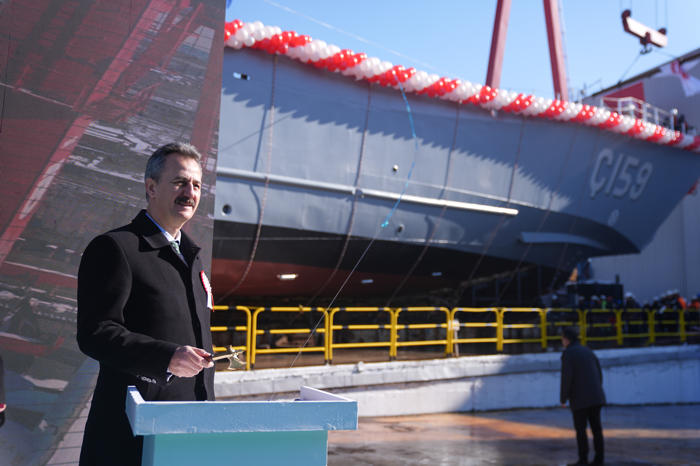 Yeni Tip Çıkarma Gemisi (YLCT) Ç-159'un denize indirilmesi Anadolu Tersanesi'nde düzenlenen törenle yapıldı. Cumhurbaşkanlığı Savunma Sanayii (SSB) Başkanı Haluk Görgün, "Son 2 yılda envantere kattığımız çok sayıda deniz platformu projesi ile tüm dünyanın konuştuğu, inceleme altına aldığı, hakkında raporlar hazırladığı ve imrendiği bu başarımızla yetinecek değiliz." ifadelerini kullandı.