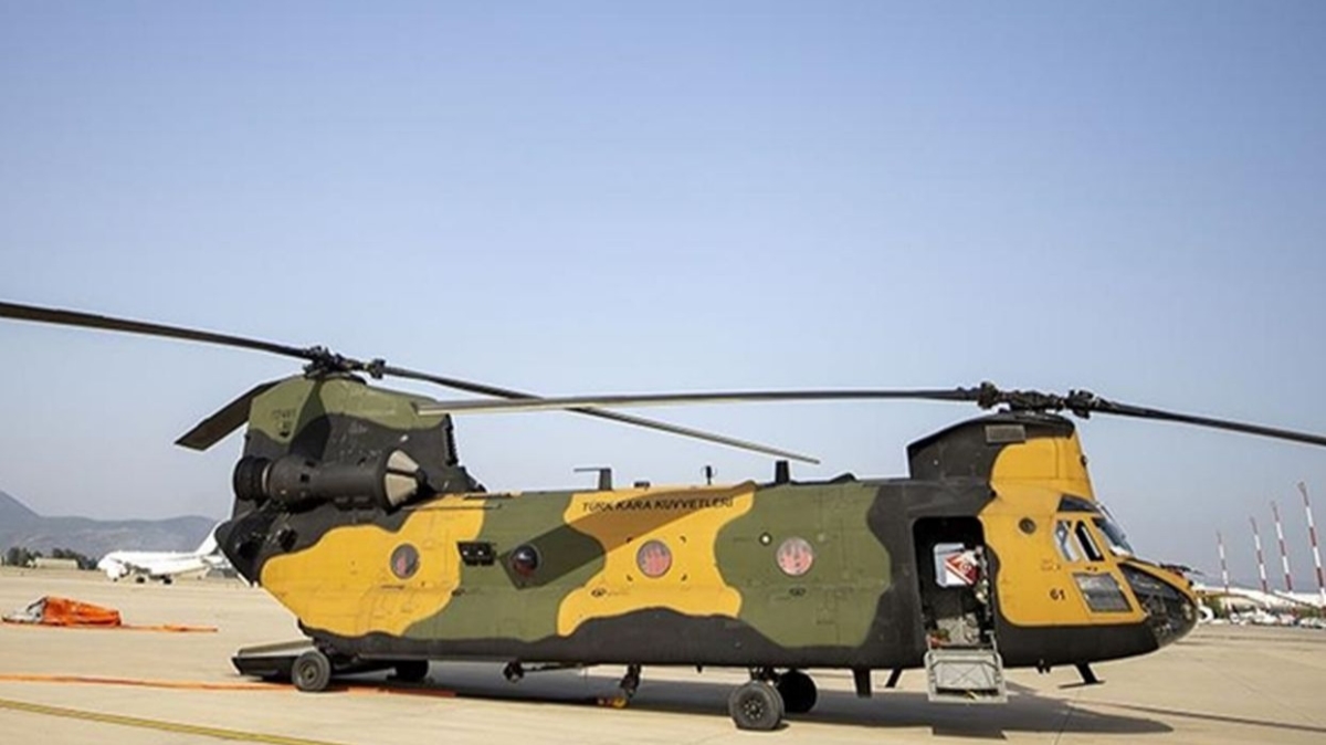 TSK envanterindeki CH-47 Chinook tipi helikopter, Milas-Bodrum Havalimanı'ndan basın mensupları ile havalandı.