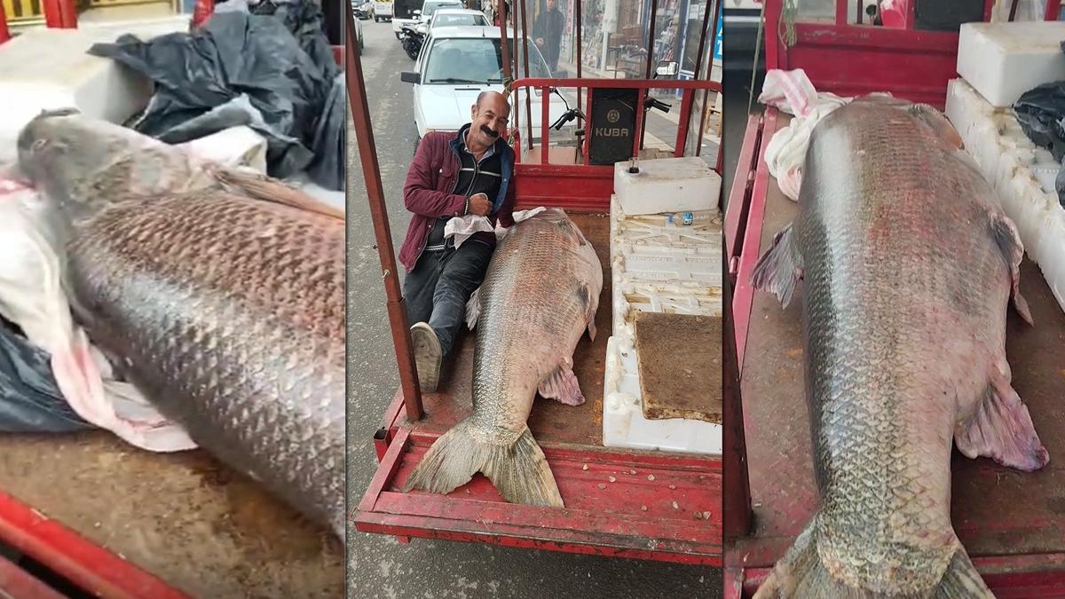 Diyarbakır'da balıkçılar tarafından yakalanan 120 kiloluk dev turna balığı görenleri hayrete düşürdü.