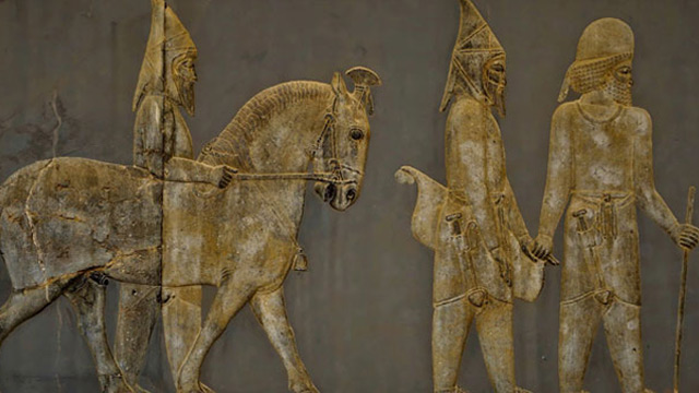 İran’ın Persepolis şehrindeki Apadana Sarayı'nda bulunan 2 bin 600 yıllık taş duvarlara yapılmış seyrek sakal, hafif yuvarlak surat ve çekik gözlü insan figürlerinin Türklere ait bilinen ilk görüntü olduğu değerlendiriliyor.