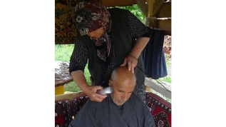 Iğdır'da yaşayan 8 çocuk annesi Fatma Özcan (70), eşi Ali Özcan'ı (80) 32 yıl önce hasta olduğu için berbere gidemeyince tıraş etti. Eşinin yaptığı tıraşı beğenen Ali Özcan, berbere gitmeyi bıraktı.