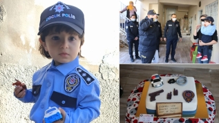 Nusaybin'de yaşayan 3 yaşındaki Mert'in polislere ve üniformaya hayranlığını duyan ilçe emniyet müdürlüğü ekipleri bir sürpriz hazırladı. Ekip, ellerinde pastayla kapısına gittikleri Mert'e üniforma ve oyuncak polis arabası hediye etti.