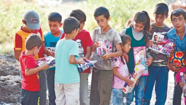 Afetzede çocuklar oyuncaklarla sevindi