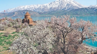 Van'ın Gevaş ilçesindeki Akdamar Adası, badem ağaçlarının çiçek açması ile ayrı bir güzelliğe büründü. Oluşan manzaraya Van Gölü'nün turkuaz rengi ile Artos Dağı'nın karla kaplı görüntüsü de eklenince, bölge fotoğrafçıların akınına uğradı.