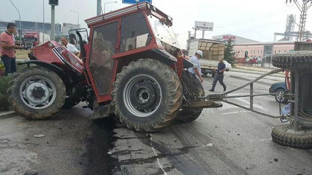 Amasya'da, TIR'la çarpışan traktör ikiye bölündü. Kazada traktörde bulunan iki kişi yaralandı.