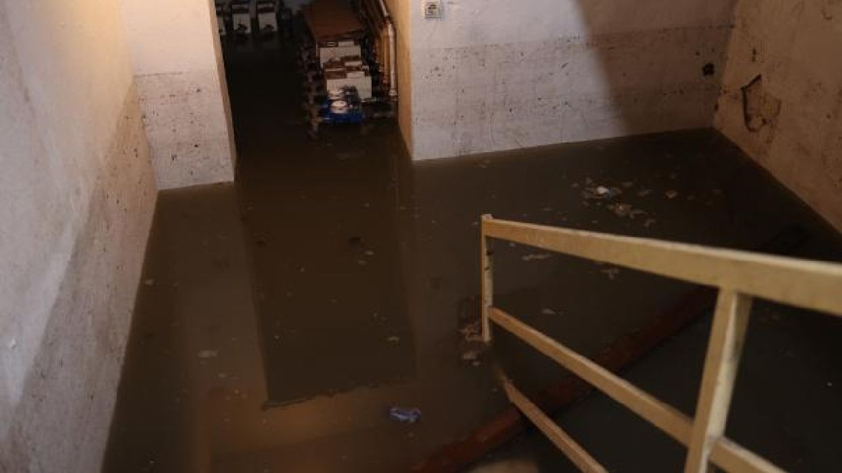 Bölgedeki Özdemir Apartmanı'nın alt katında bulunan depoda su seviyesi yarıya kadar yükselirken, bitişiğindeki apartmanın alt kattındaki dairede eşyalar kullanılamaz hale geldi.