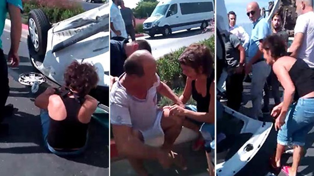 Antalya’da meydana gelen kazada ters dönen araç içerisinde can pazarı yaşandı.